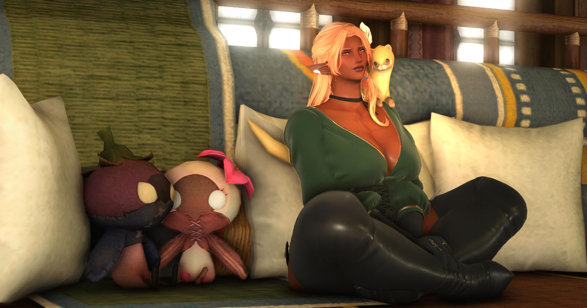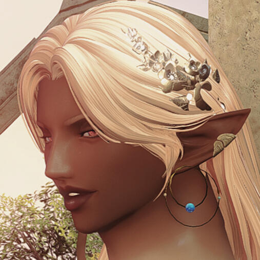 a quick summary. Siobhan was born to her Hellsguard mother in the Dravanian hinterlands, to her Sharlayan father within the old settlement there. When she was but four years old, she awoke one day to her father abandoning her mother and her - Sharlayan had called him back to the homeland, and he had little care to bring back the family he'd started. Left alone, Siobhan and her mother returned to the tribe of Hellsguard that roamed the mountains of Dravania. And one day, she was pulled aside by her grandmother, and had a gift thrust upon her that would change her life forever - the gift to collect memory from places, from items, and from people, should these things have enough emotion attached.She's made it her life's work to collect memories long forgotten through this gift. People and their proclivities are her keenest interest, learning their lives and their stories so she might preserve and retell them in song for futures that may never know them if not for her. To Siobhan, to forget is to die, and preserving memories of those who have forgotten their own or have passed on before they could share their tales is the single most important task.Endlessly she travels across the many continents of Etheriys with her companions - a chocobo, Sostenuto, and a little white whittret, Banana. She's chronically unemployed, taking odd jobs here and there and often hunting for Clan Centurio to make what little coin she keeps or busking on the streets and stages of the myriad city-states of the world.Though she may seem like sunlight personified, grief everlasting walks with her like her own shadow. A melancholy lives in her that sits like ice in her chest, keeps her from warming to others fully. Ever keeping herself at arm's length, she still longs for connection - and often finds herself tripping over her own feet to try.